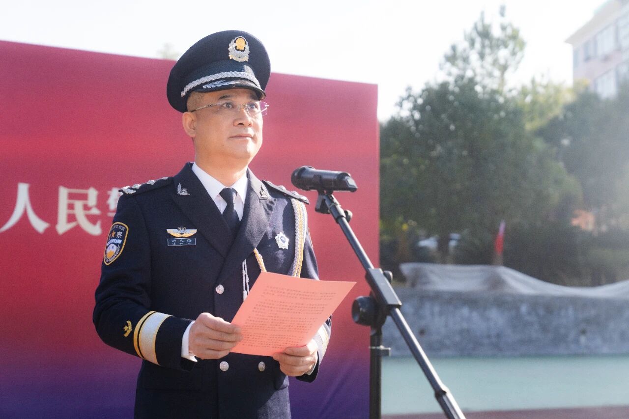 “我是中国人民警察,我宣誓!”副市长、公安局长游文杰领誓,全体民警高举右拳庄严宣誓,铮铮誓言响彻云霄,字字句句镌刻着“人民公安为人民”的初心使命。
