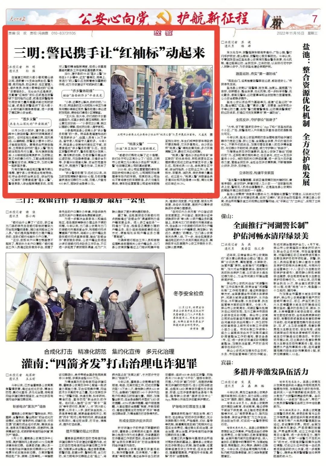 在福建三明的大街小巷和青山绿水之间,活跃着178支由治保主任、警务助理、微网格员、物业保安、社区管理人员、退休党员、快递小哥等组成的“红袖标”志愿服务队。无论白天还是黑夜,这支戴着“红袖标”的队伍或是在民警带领下在网格内巡逻,或是在民警指导下协同安保力量开展重点部位和时段的巡查,或是在民警组织下在大街小巷、乡间村道开展隐患排查,进一步提升了辖区群众安全感。