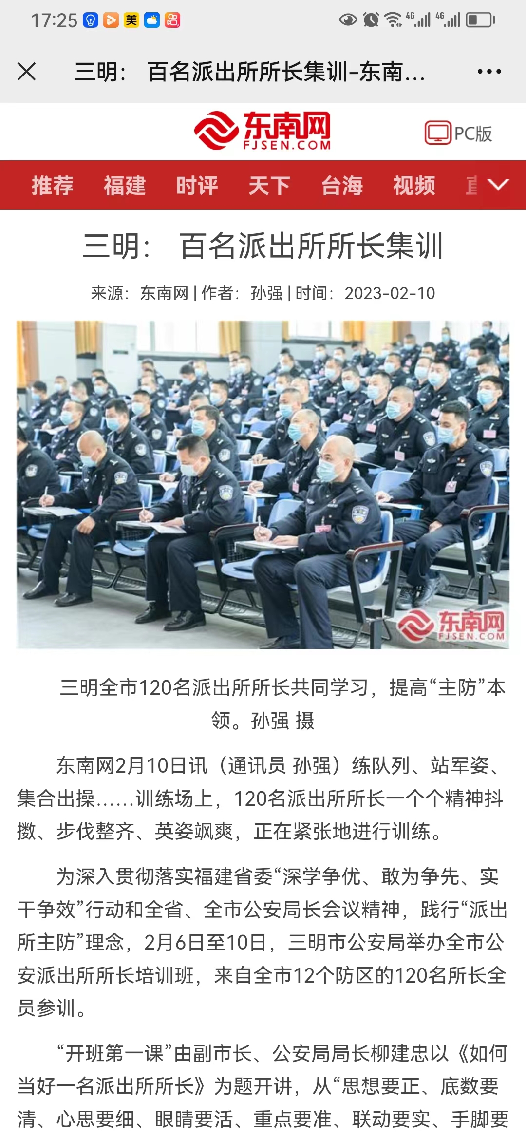 为深入贯彻落实福建省委“深学争优、敢为争先、实干争效”行动和全省、全市公安局长会议精神,践行“派出所主防”理念,2月6日至10日,三明市公安局举办全市公安派出所所长培训班,来自全市12个防区的120名所长全员参训。
