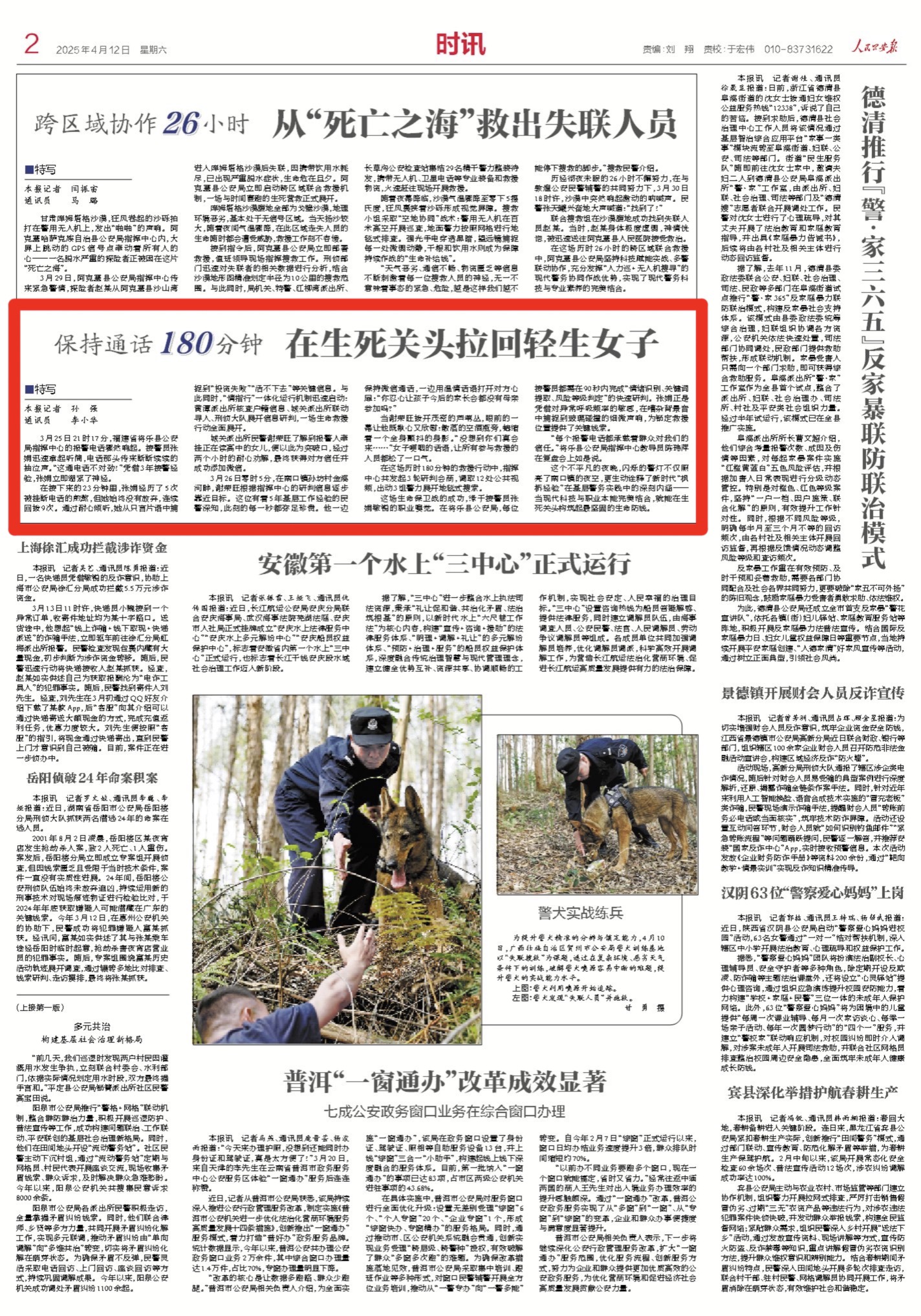 这个不平凡的夜晚,闪烁的警灯不仅照亮了南口镇的夜空,更生动诠释了新时代“枫桥经验”在基层警务实践中的深刻内涵——当现代科技与职业本能完美结合,就能在生死关头构筑起最坚固的生命防线。