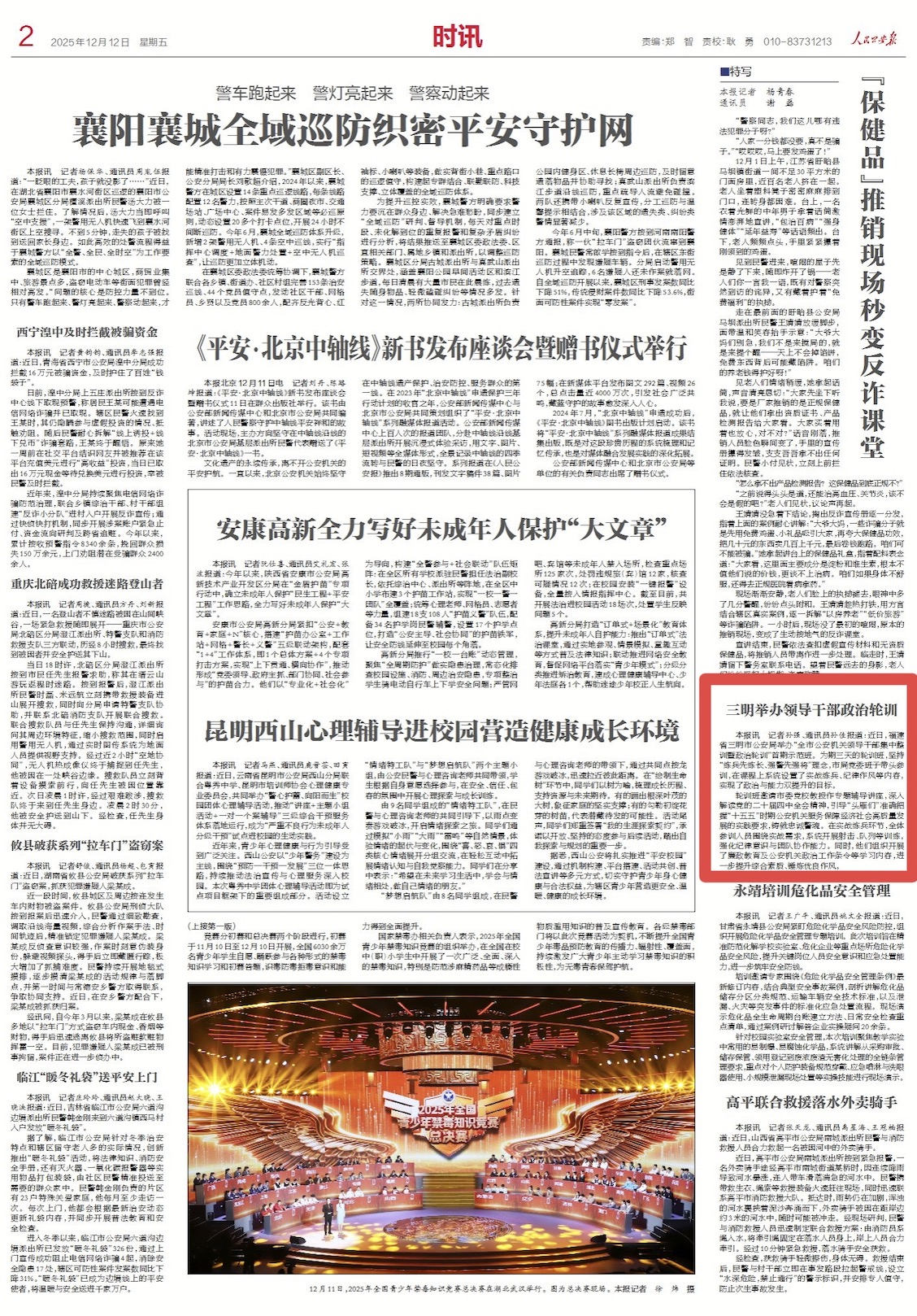 本报讯 记者孙强、通讯员孙佳报道:近日,福建省三明市公安局举办“全市公安机关领导干部集中整训暨政治轮训”首期示范班。为期三天的轮训班,坚持“练兵先练长、强警先强将”理念,市局党委班子带头参训,在课程上系统设置了实战练兵、纪律作风等内容,实现了政治能力双提升的目标。