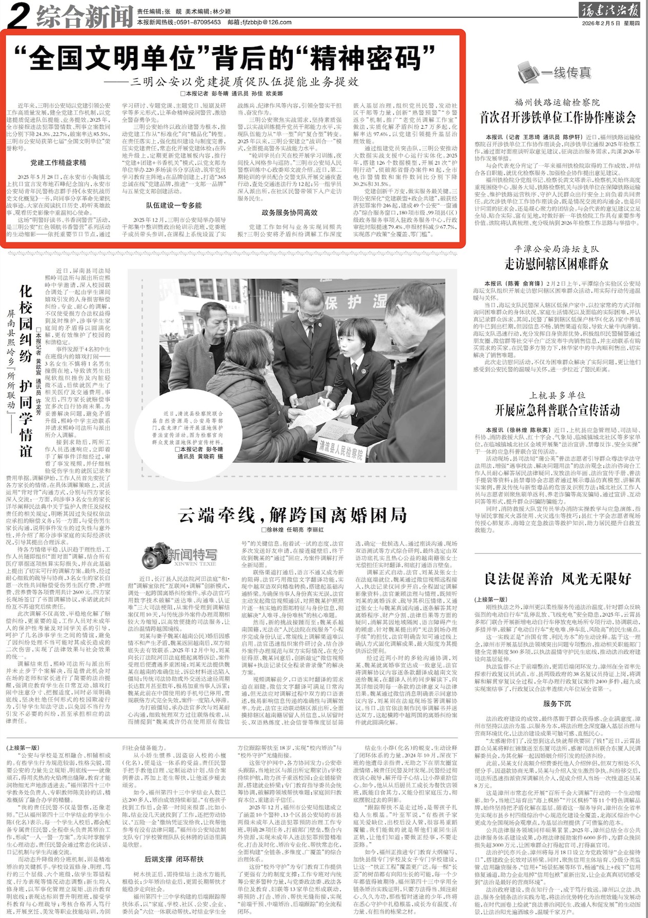 近年来,三明市公安局以党建引领公安工作高质量发展,健全党建工作机制,以党建提质促进队伍提能、业务提效。2025年,全市接报违法犯罪警情数、刑事立案数同比分别下降24.3%、22.7%,破案率达85.5%,三明市公安局荣获第七届“全国文明单位”荣誉称号。