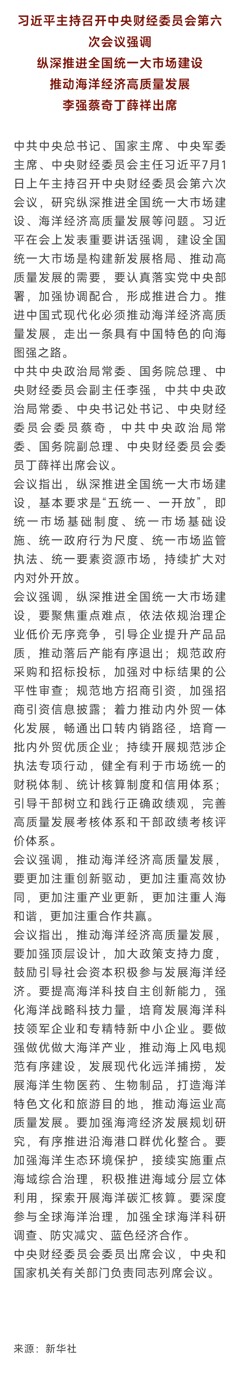 习近平主持召开中央财经委员会第六次会议
