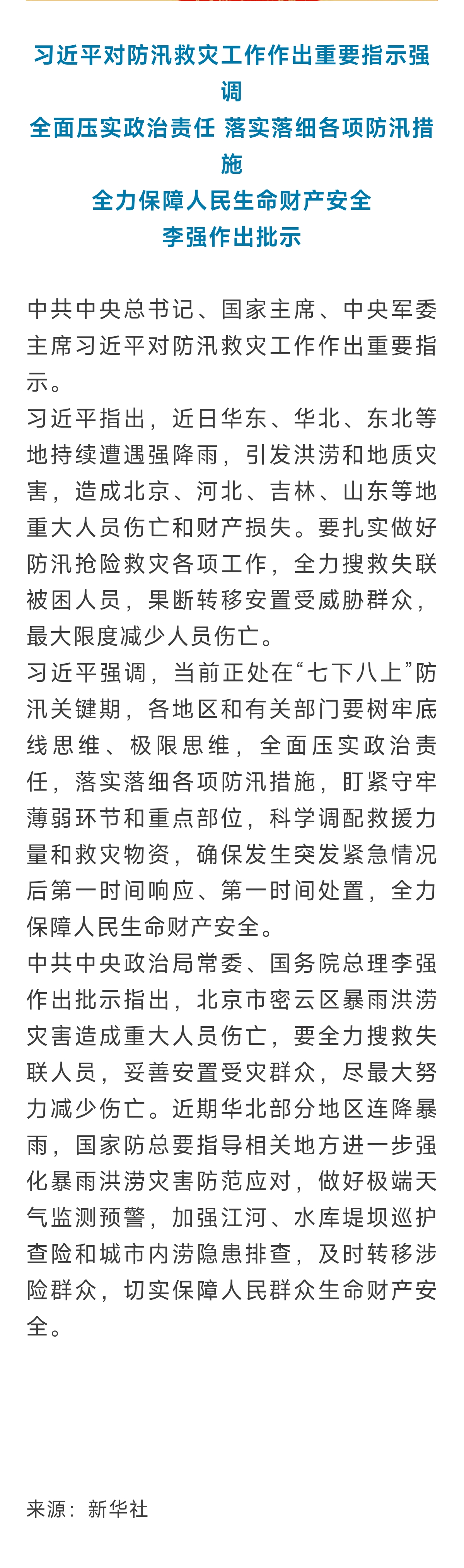 习近平对防汛救灾工作作出重要指示