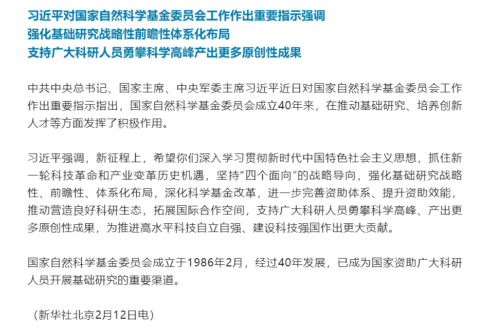 习近平对国家自然科学基金委员会工作作出重要指示