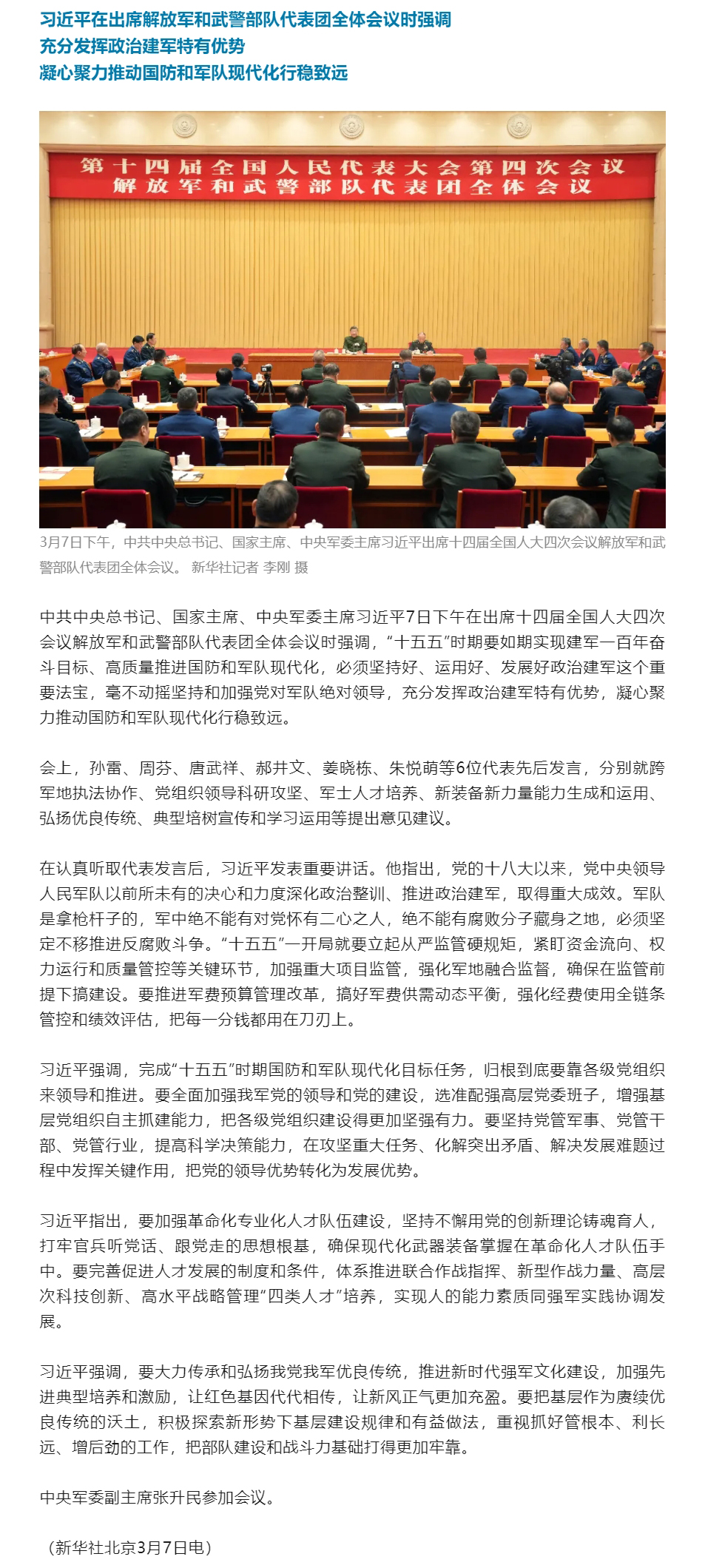 习近平:充分发挥政治建军特有优势 凝心聚力推动国防和军队现代化行稳致远